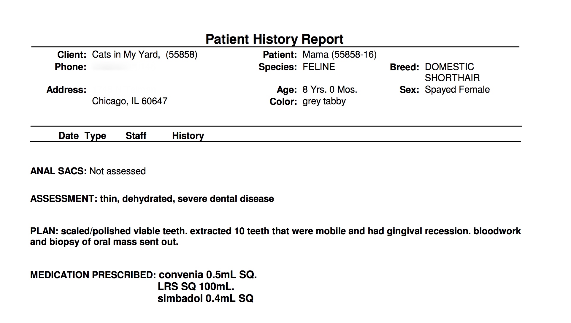 The shelter ultimately refused admission for Wolfie based on their exam. Jennie managed to get him into another shelter called C.A.R.E. last month. Coincidentally, he was admitted with another one of her cats, Gorgeous George, that I vetted from her colonies.