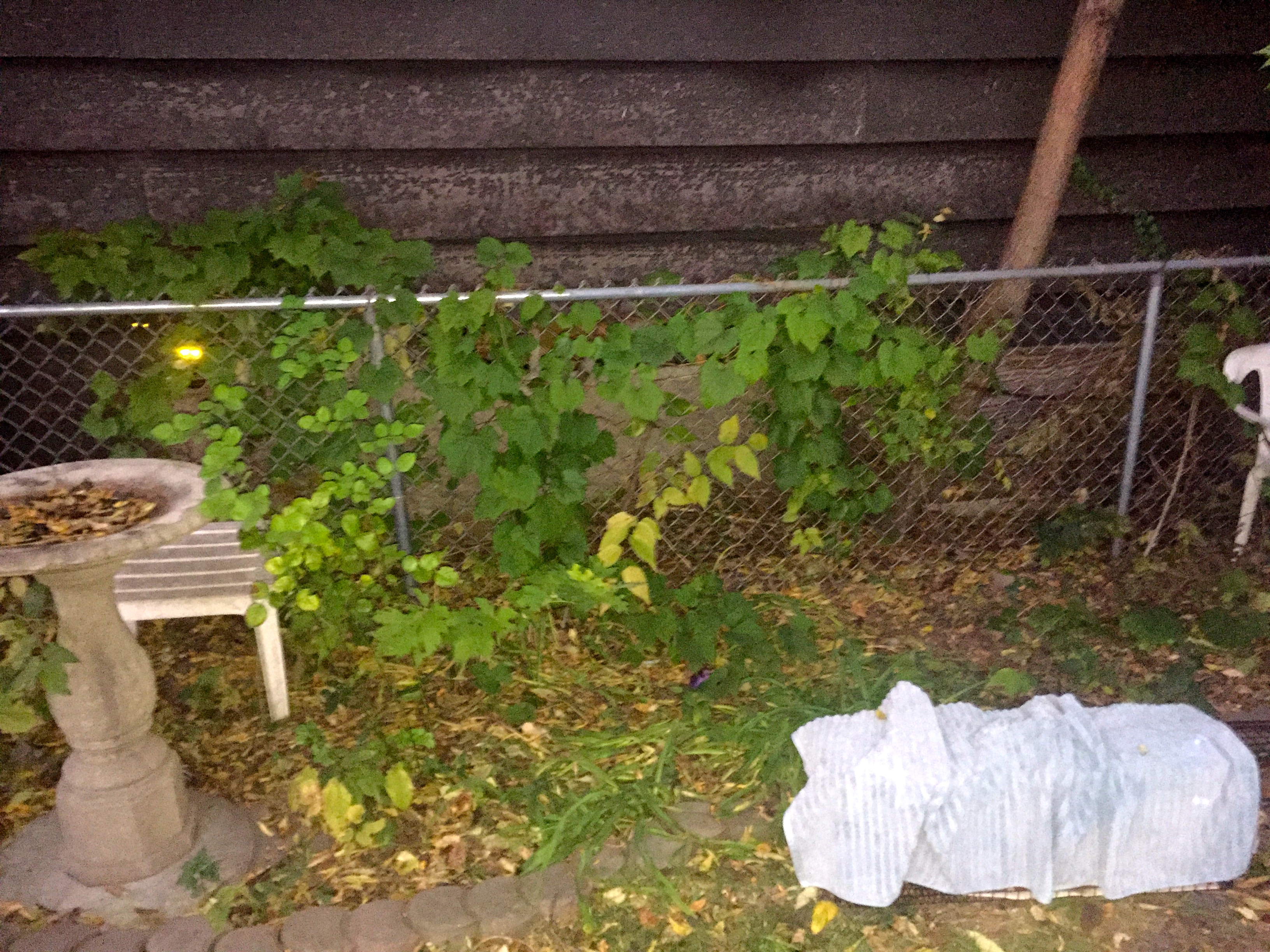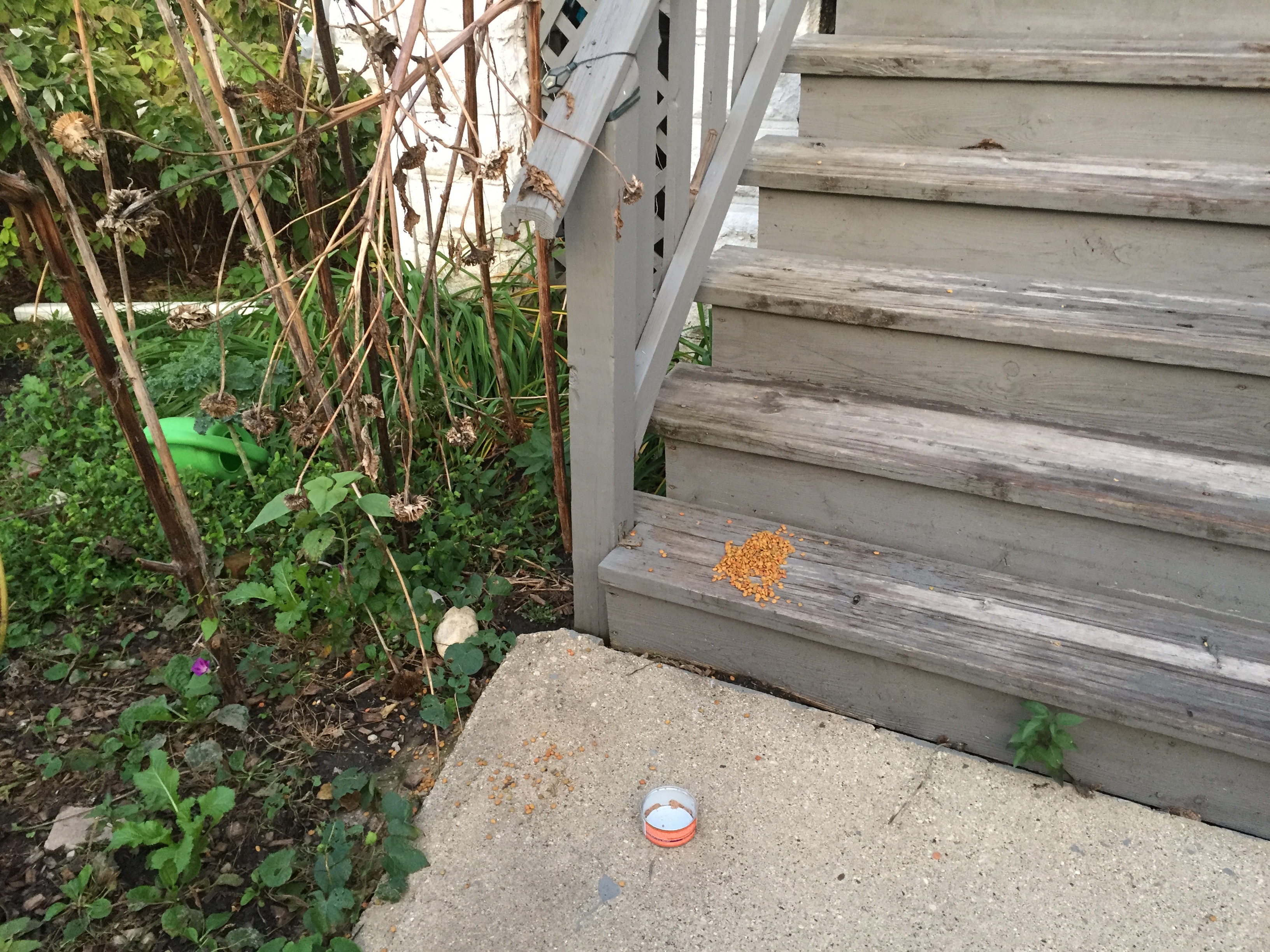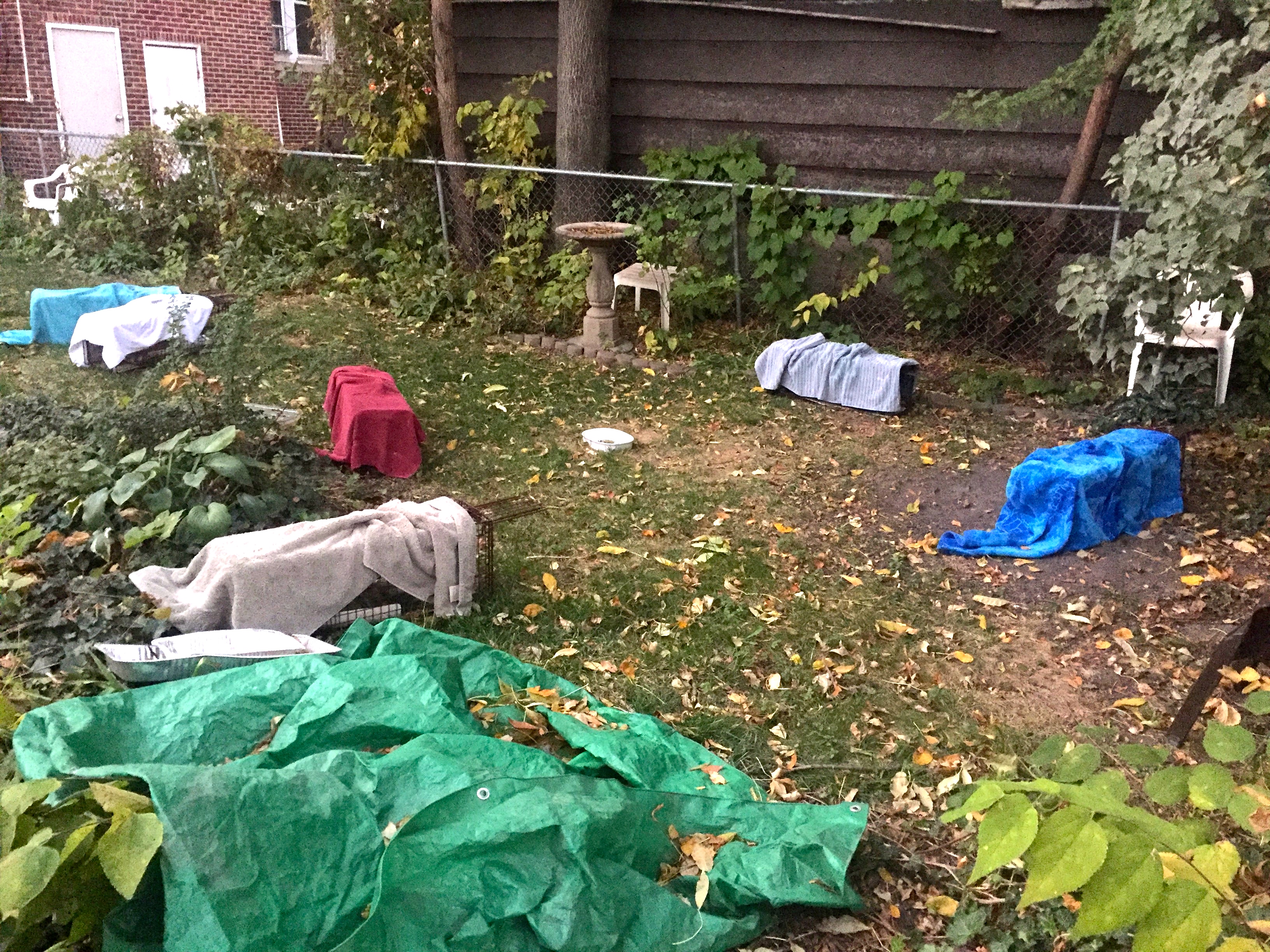 We threw out the food, and set up the traps regardless. Melanie has a beautiful yard and garden, perfect for the cats to hang out and hide in. And perfect to keep traps hidden in.