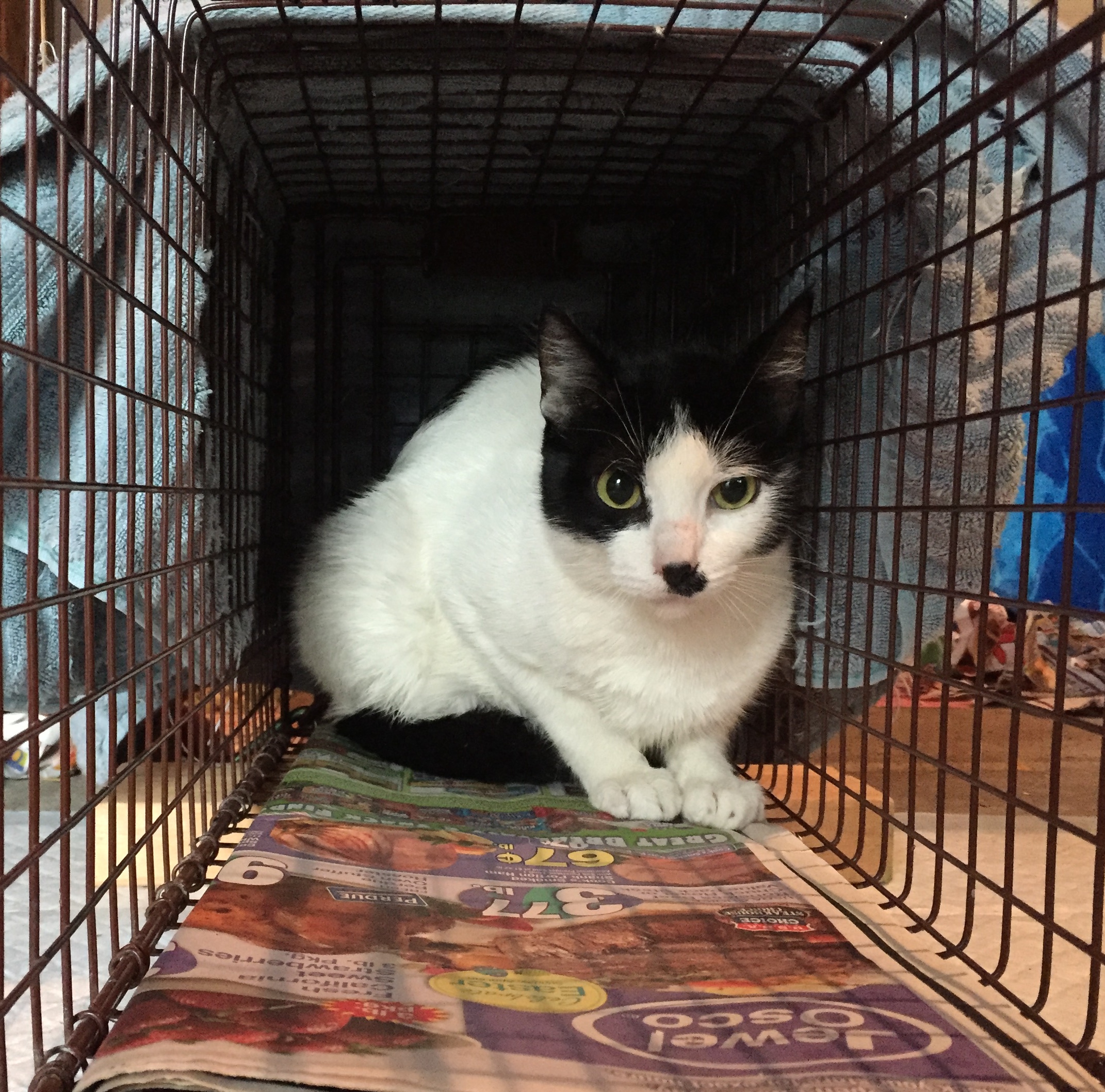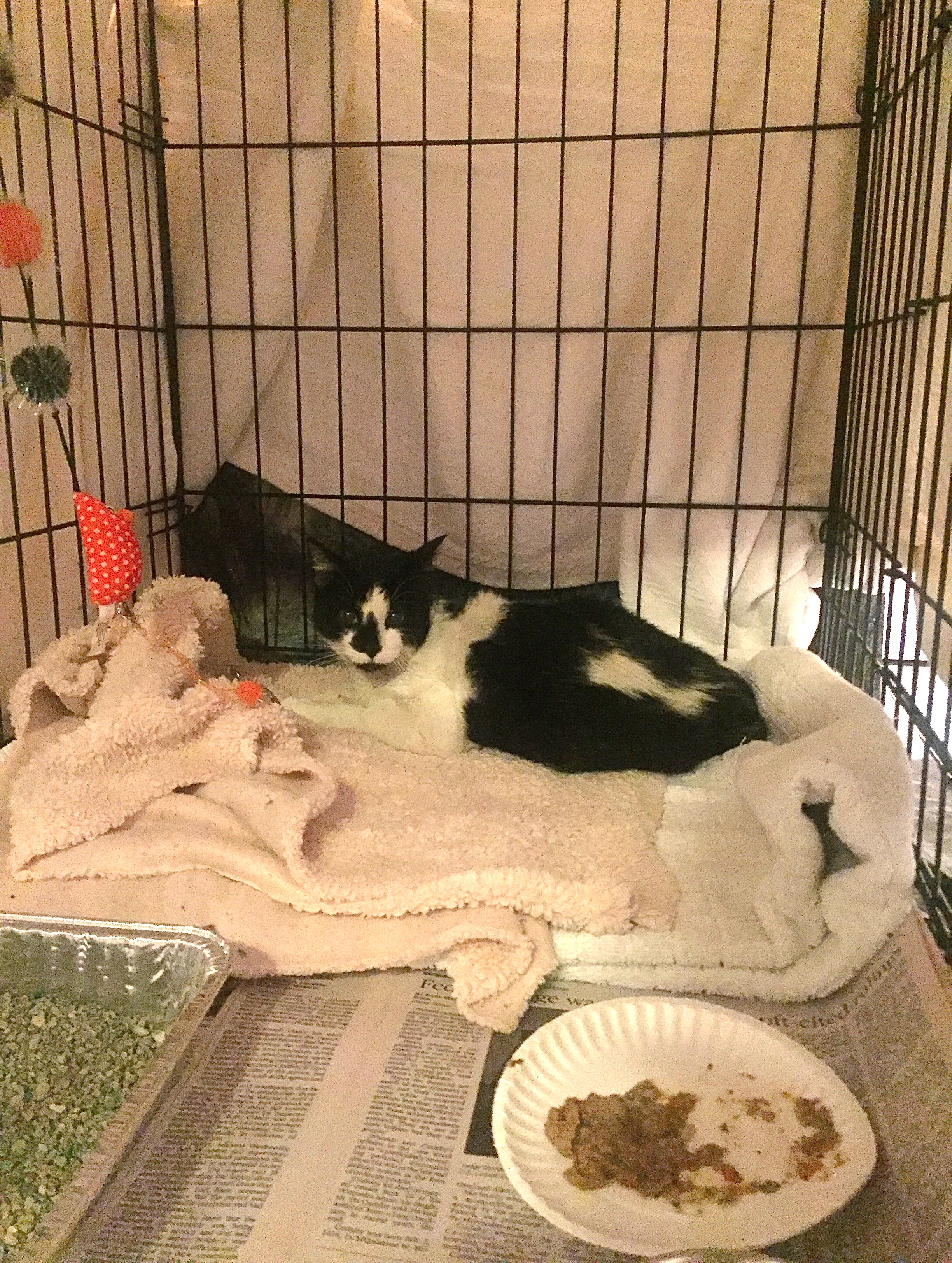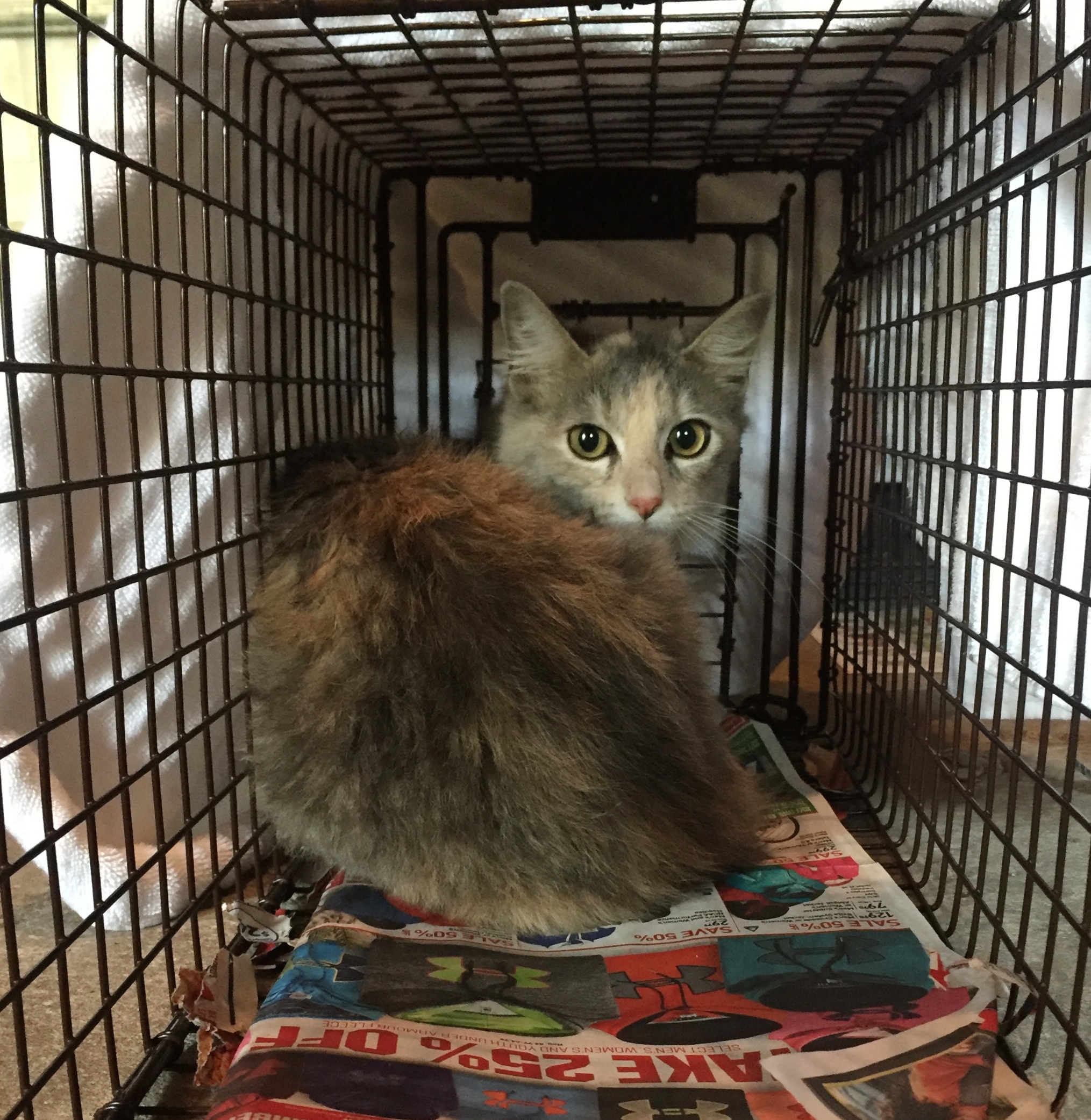 During that time, a little cat came wobbling up to us. Clearly something was wrong with her because she was walking very funny, and we were lucky to trap her. I’ll write more about her and her injuries later.