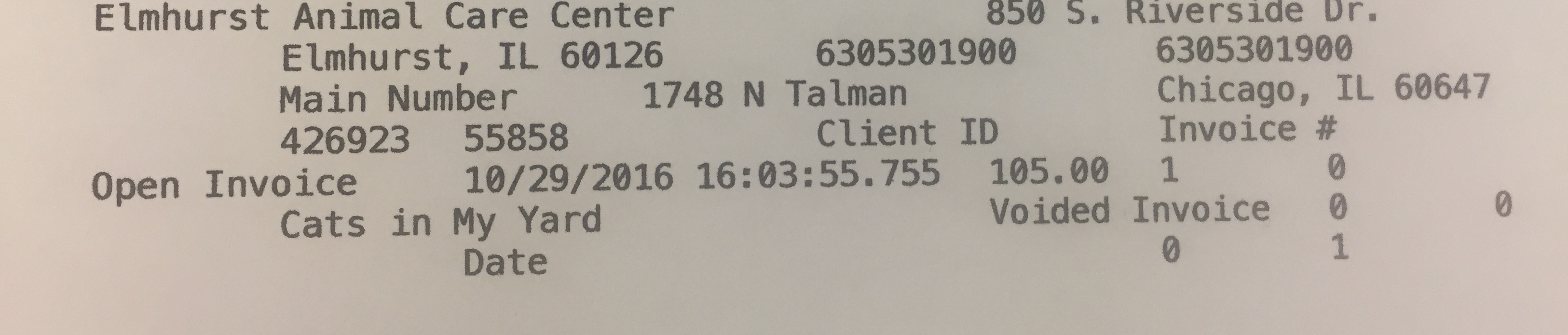 I’ll also be updating soon about what is happening with the four kittens and injured cat. We also know there are more cats out there from this colony. Please contact us if you’d like to help, 773-609-CATS (2287) or [email protected]