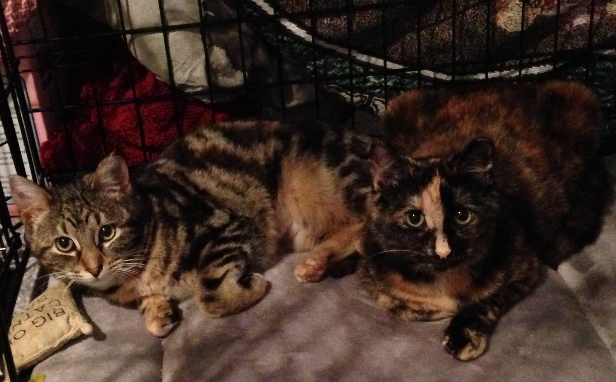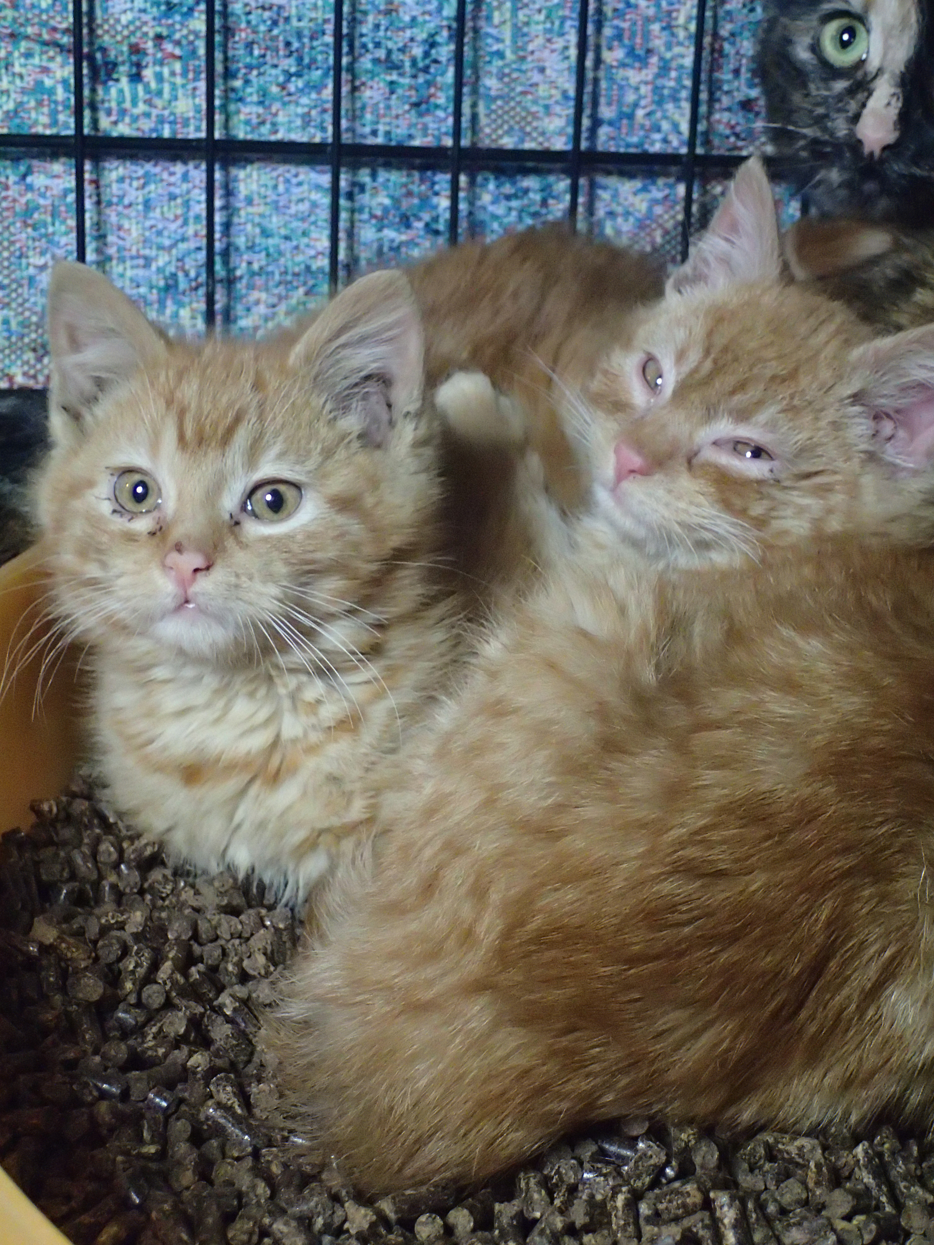 They are older kittens, bonded, most likely from the same litter, and needed some socialization in order to be admitted into a no-kill shelter.